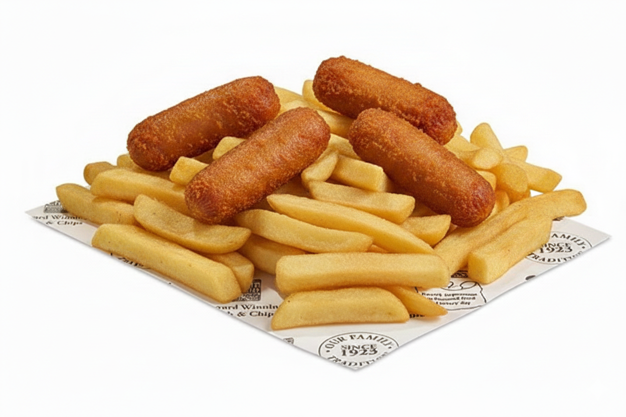 Bargain Bangers - 4 sausages and 4 chips